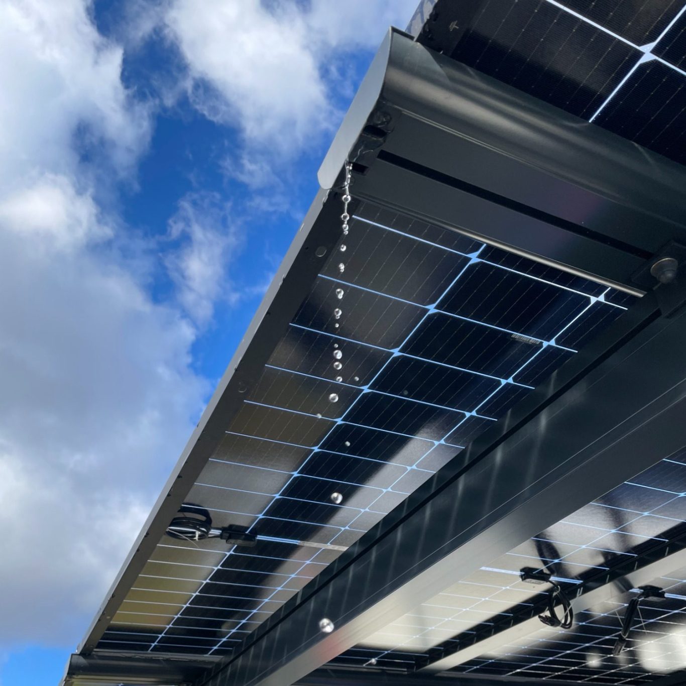 Die innovativen speziell entwickelten Smart-Rain-Channels / ALU-Regenablaufrinnen befinden sich nicht sichtbar innerhalb der Alu-Trägerprofile und bieten eine absolute integration zwischen ALU-Konstruktion und den Solarmodulen, ohne Silikon oder Gummidichtungen und garantieren einen 100% trockenen Unterstand.